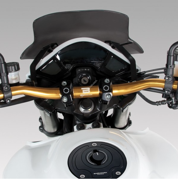 Designed to adapt a Cast (the upper triple) handlebar Lower mount from a 7/8 (22mm) bar to a 1 1/8  (28mm) tapered bar.  Rise is minimal, so it will work with most aftermarket bars