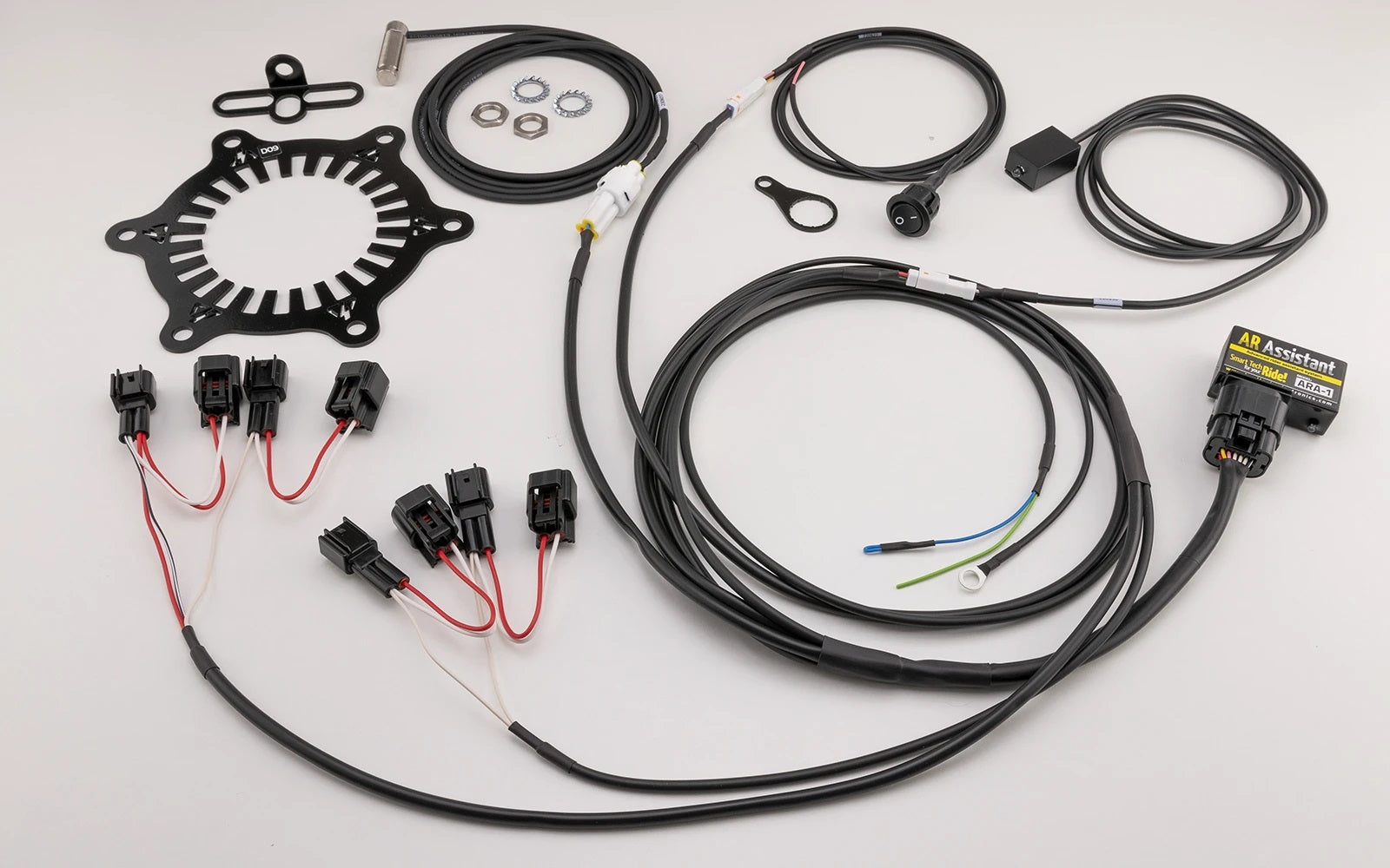 The AR Assistant is a complete rider-aid package including traction and wheelie control for maximizing rider safety & performance both on road and racetrack. Compatible with a wide range of motorcycles. Supplied with bike-specific harness kits for quick and easy installation.