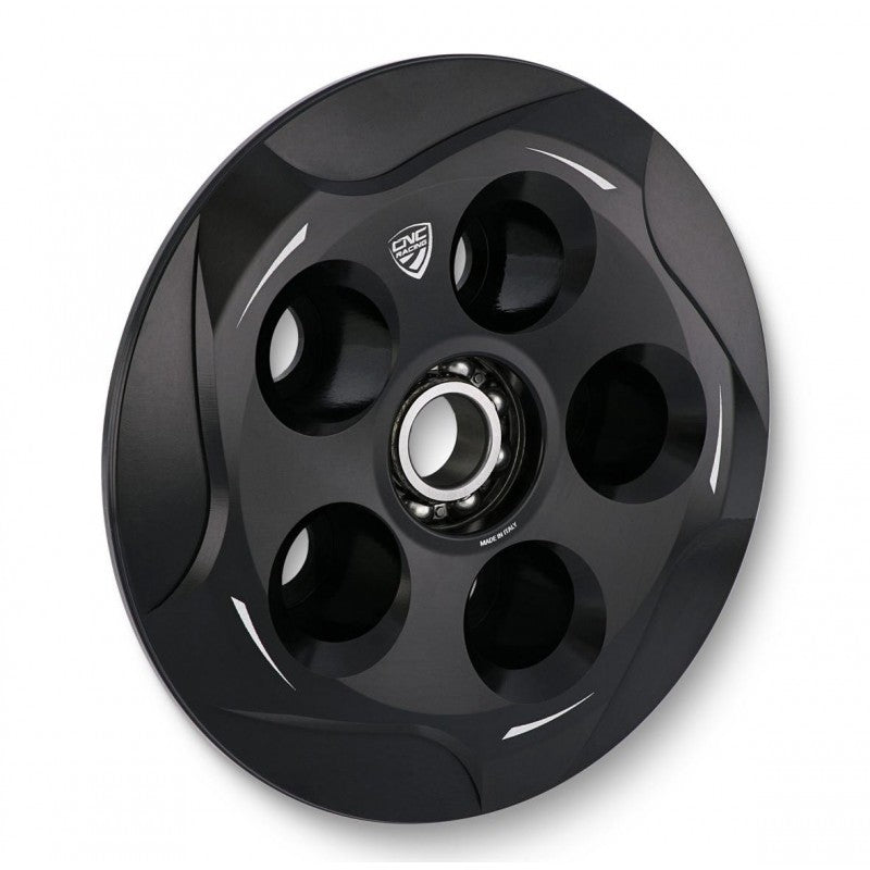Pressure plate dedicated to oil bath clutch Ducati made in light alloy, machined from solid and then anodized.