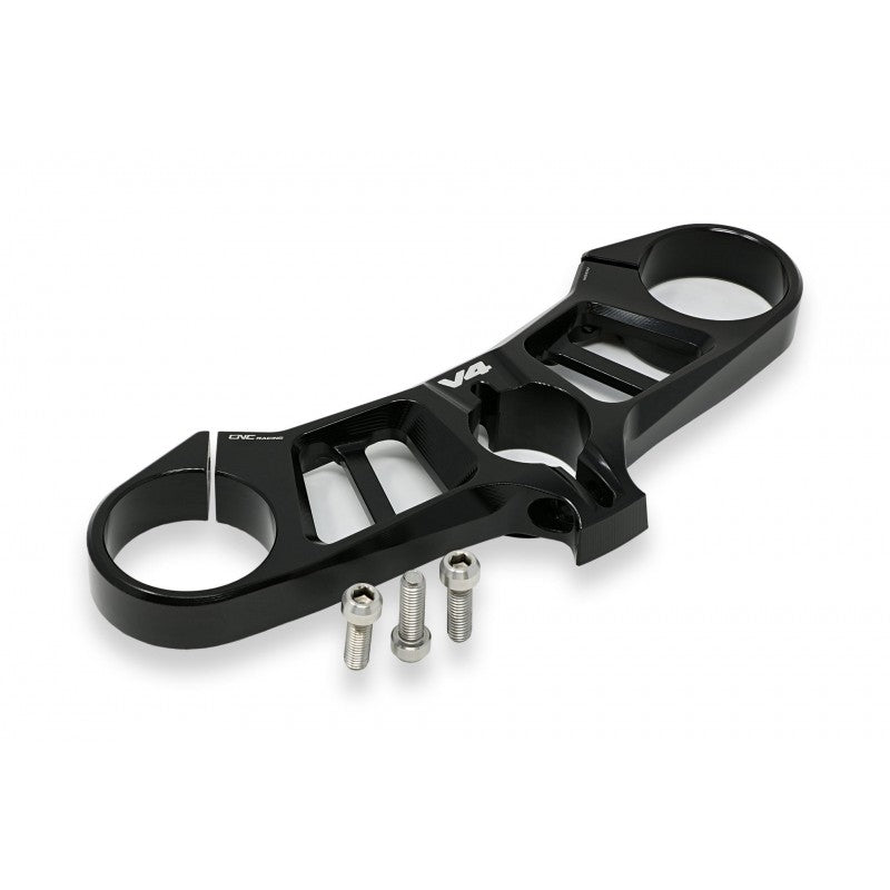 Top yoke made in light alloy, machined from solid and then anodized. Plate respects the oem angle of inclination.